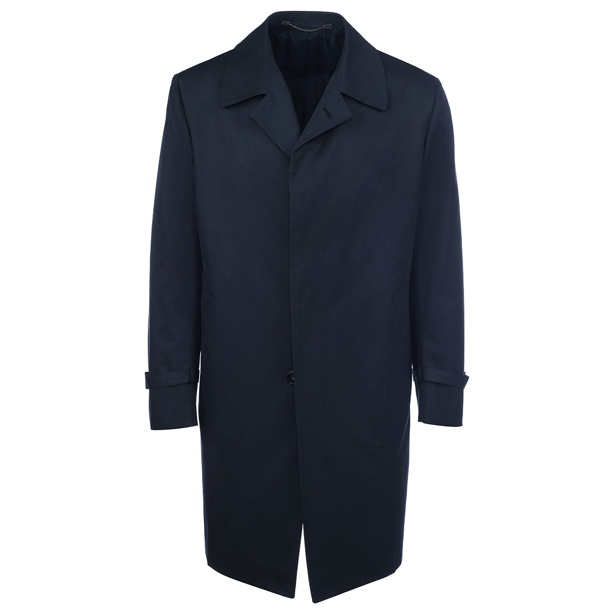 Impermeabile in cotone con bottoni rivestiti, 2 tasche a filetto, polsini con fibbie, mezza fodera, manica a camicia, doppia cucitura, spacco centrale. Tinta unita blu interamente tagliato e cucito a mano dai nostri maestri sarti. Il prezioso filato di cotone rende il nostro capo unico. Questo soprabito versatile e raffinato è ideale per la primavera.