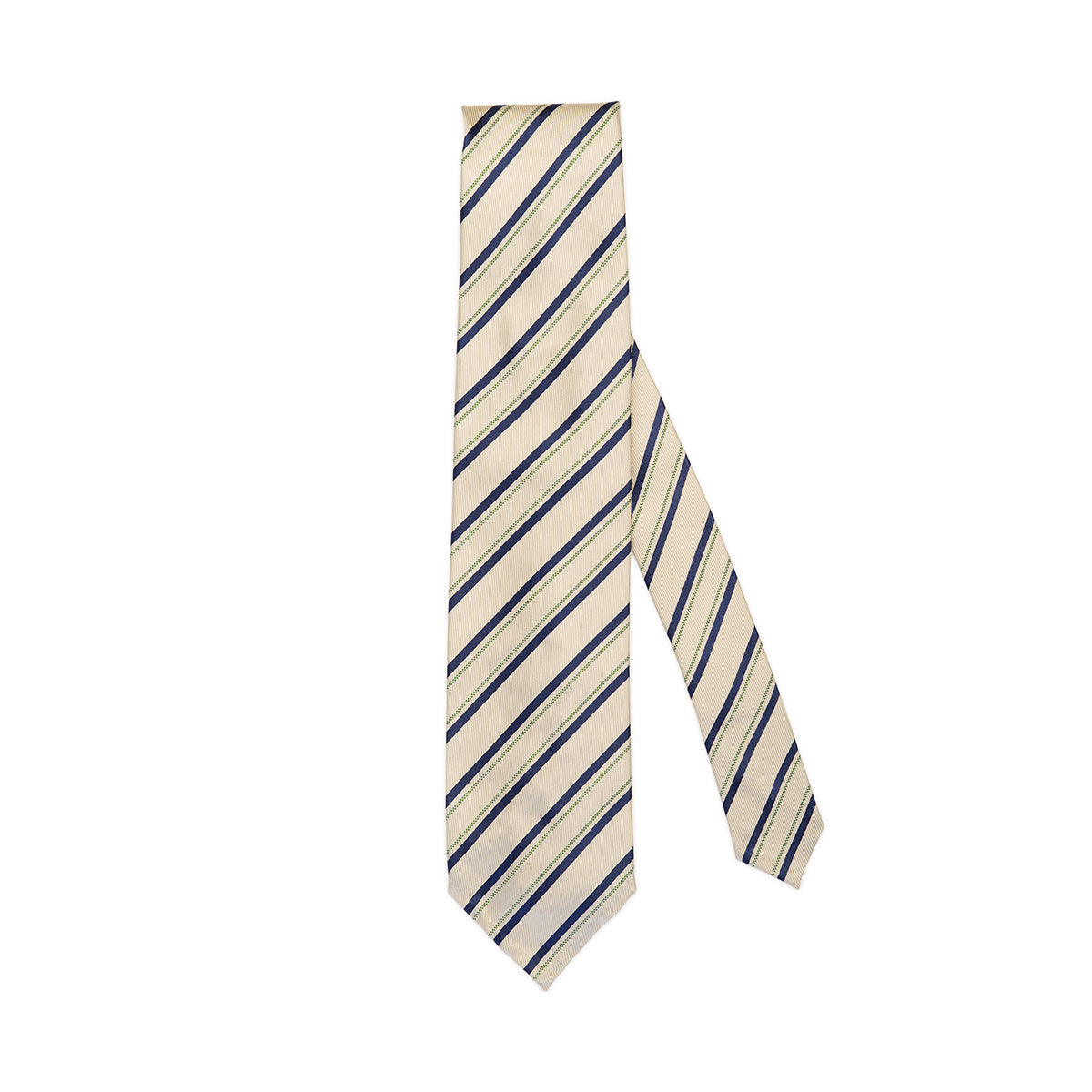 Cravatta foderata 8,5 cm fondo avorio con riga blu e verde.