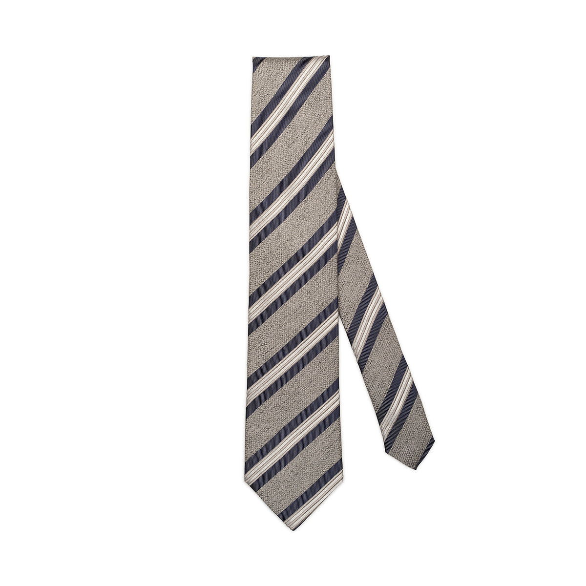 Lined Tie 8.5cm pearl grey background with blue, grey white stripe.