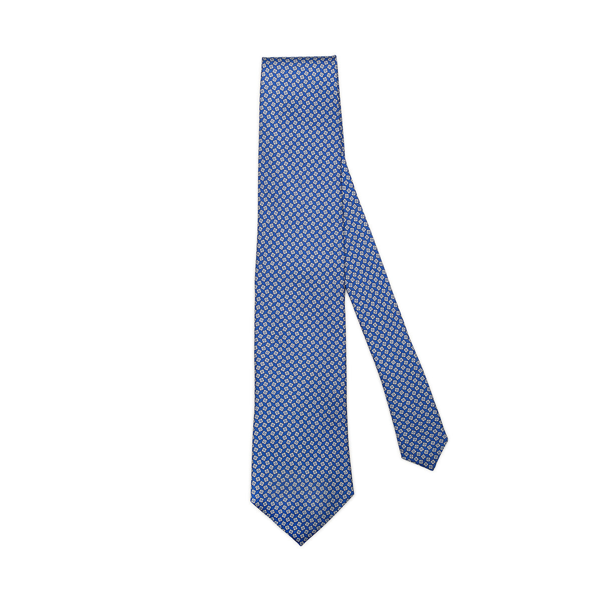 Lined Tie 8.5cm blue background with white and light blue rhombus design.